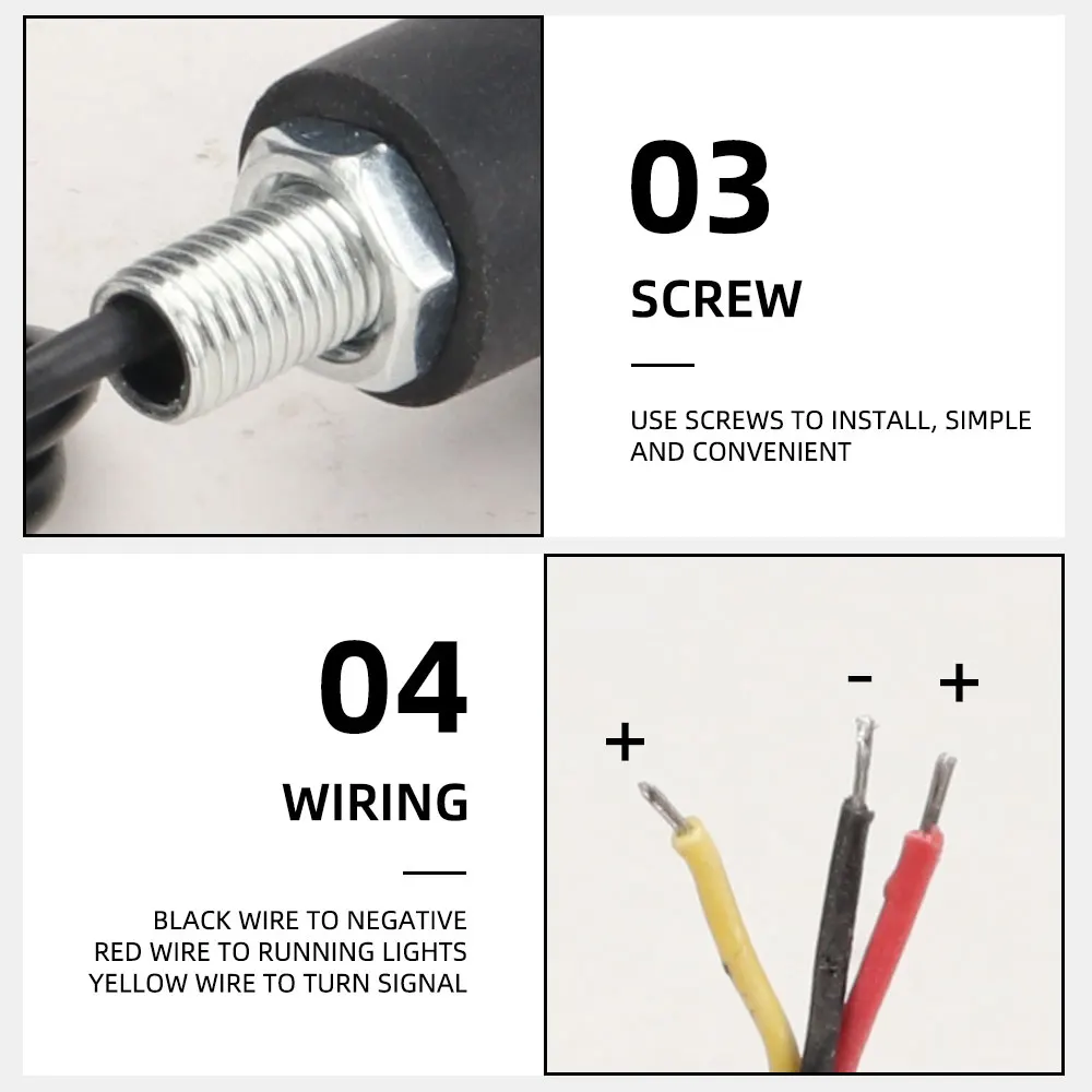 Transformez votre moto avec ces clignotants LED universels haute qualité ! Ces indicateurs de direction LED s'installent facilement sur tous les embouts de guidon et offrent une visibilité optimale jour et nuit.