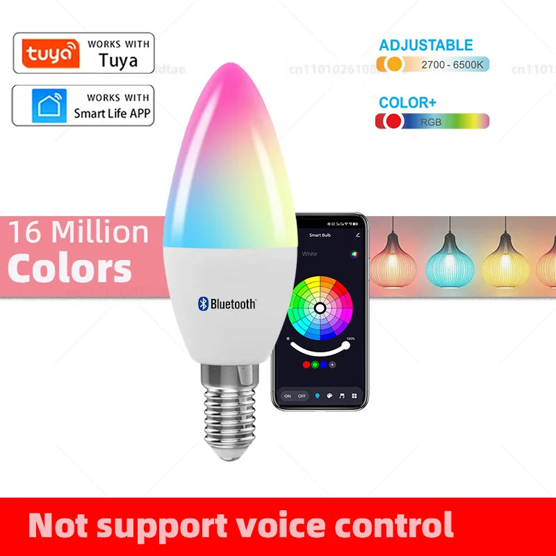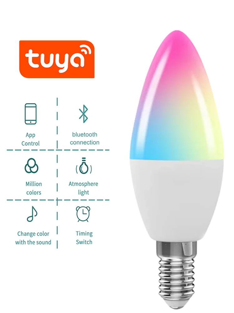 Tuya Candle Lamps APP Control Smart Bulb Bluetooth RGB 220V 110V LED Light Dimmable Smart Life Room Home Group Crystal Lamps